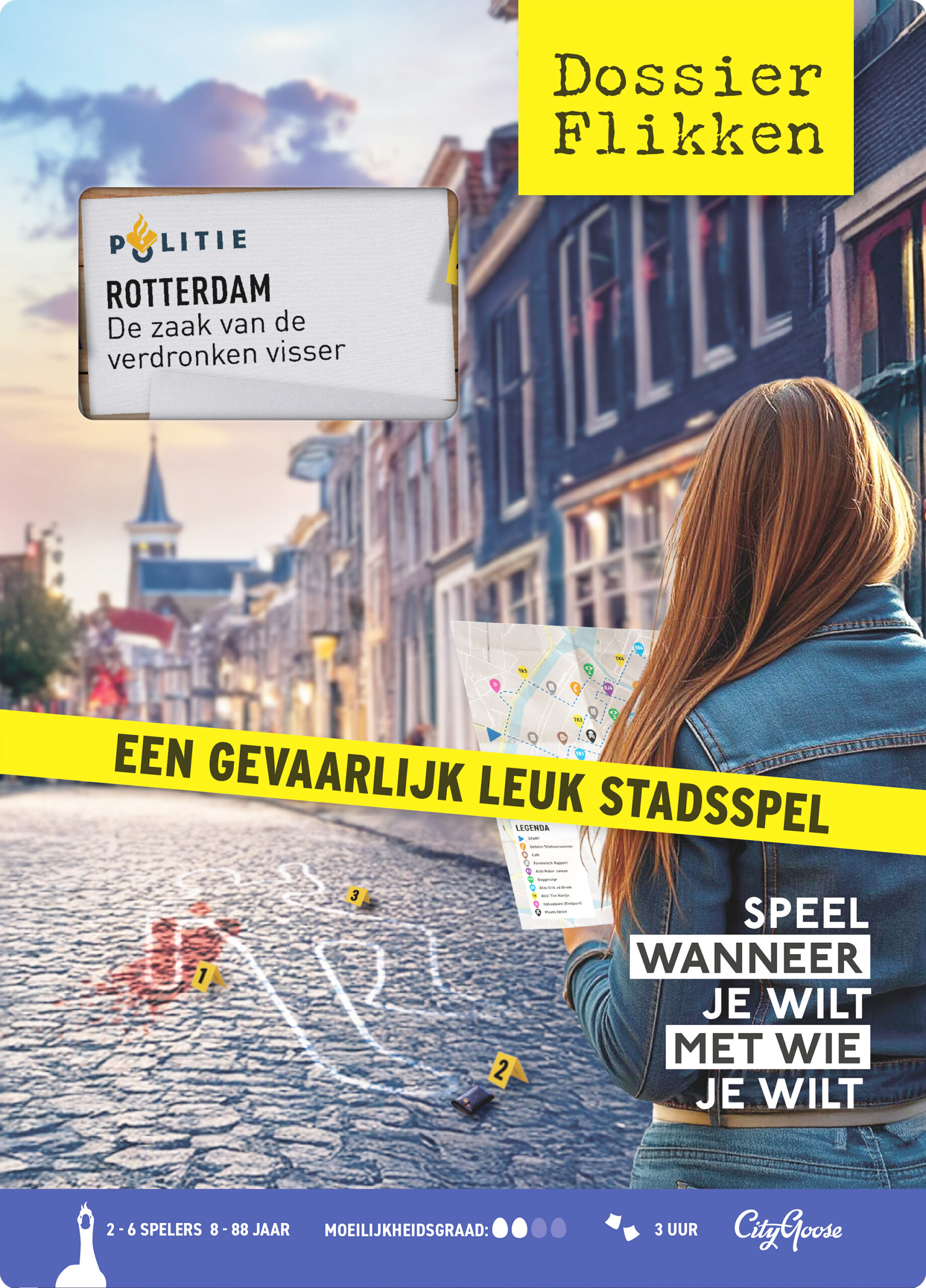 Groepsgrootte:Per dossier speel je met 6 personen. Voor grotere groepen kijk bij citygoose.nl/grote-groepen.
