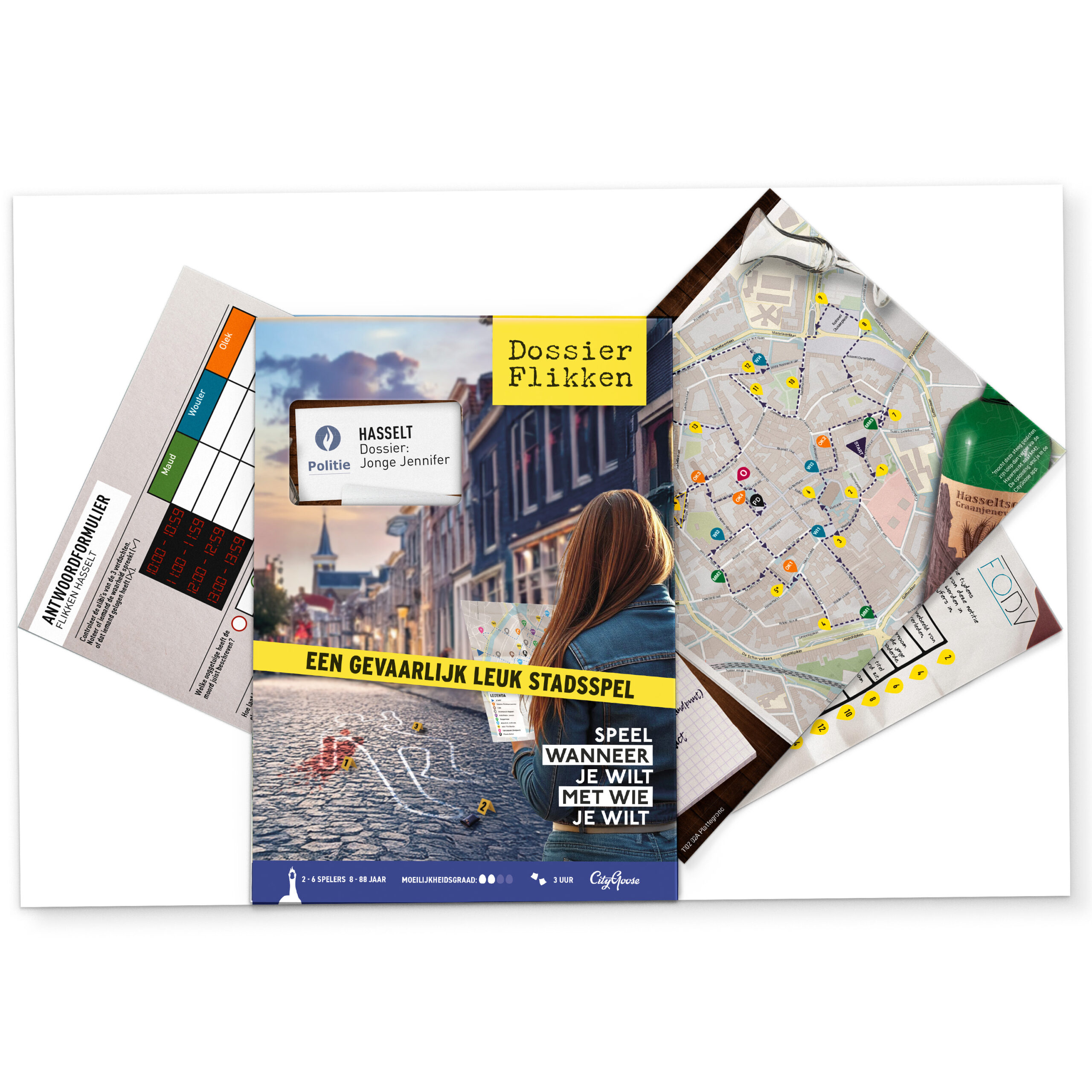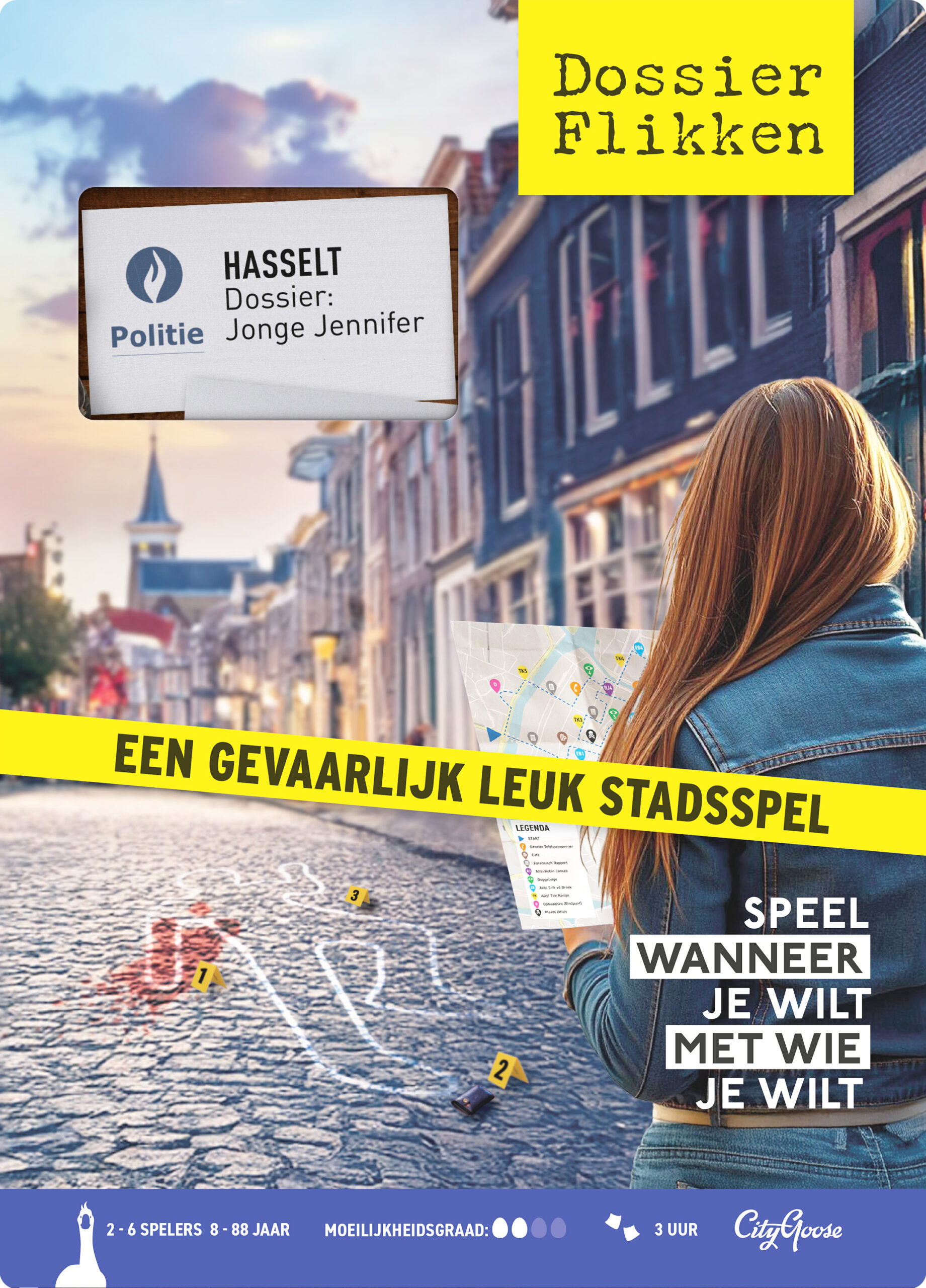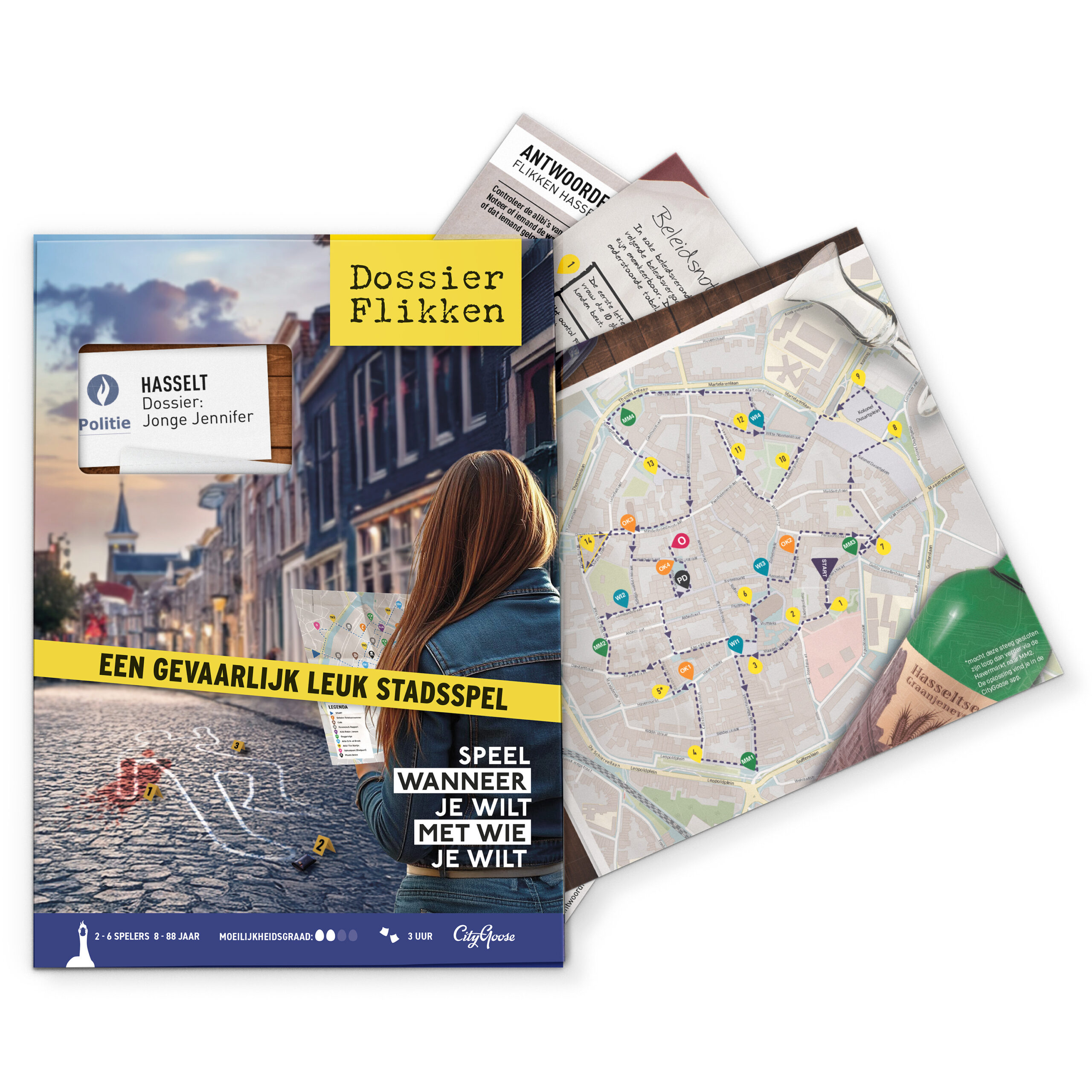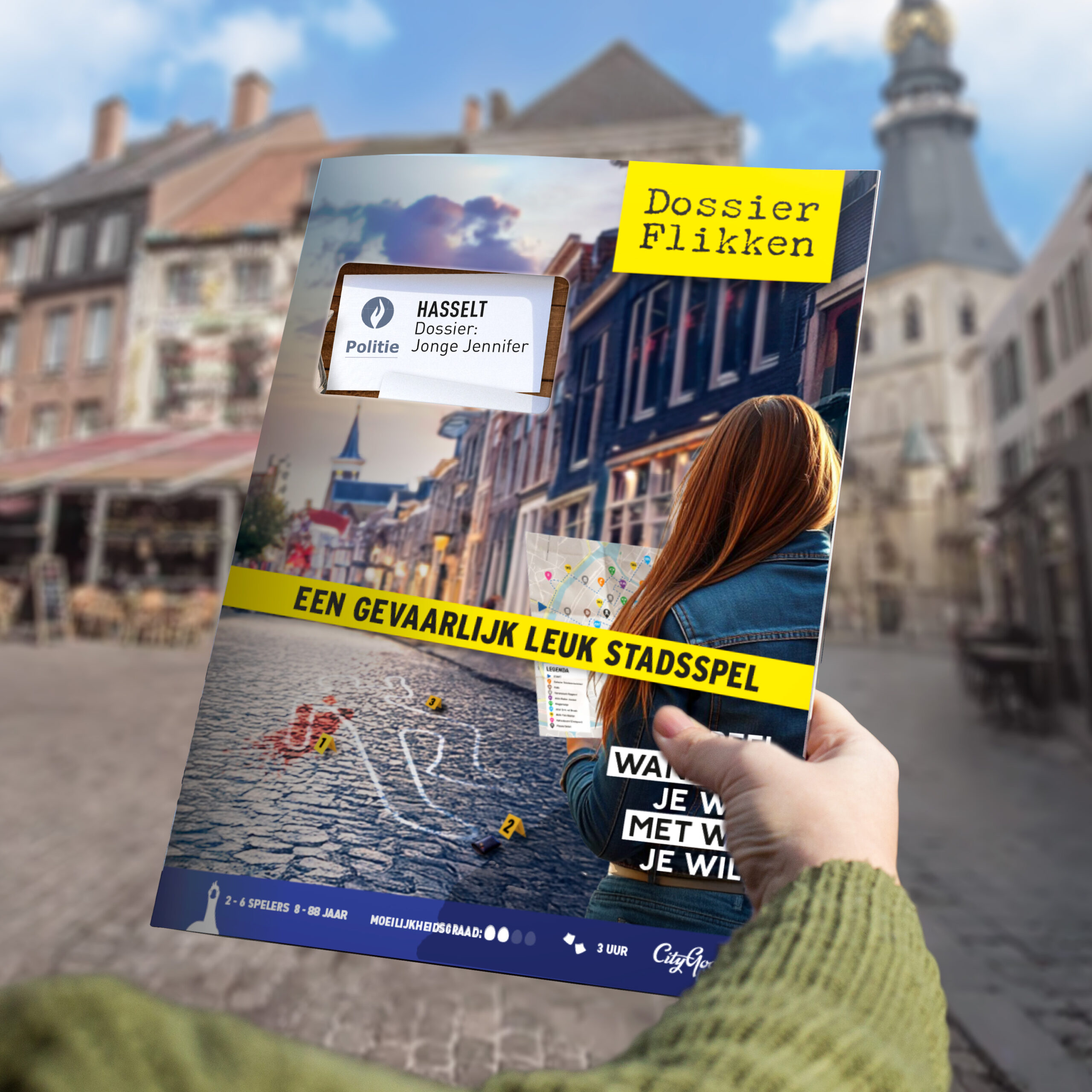 Wat was Jennifer van plan en wie wilde haar plannen voorkomen? Als detective ga je met het politiedossier op pad, vol getuigenverklaringen, alibireportages en buurtonderzoeken. De route voert je langs de mooiste plekjes van Hasselt. Verzamel bewijsmateriaal en ontcijfer cryptische berichten en haal aan het einde belangrijk bewijsmateriaal op. Leg jij alle puzzelstukjes samen?